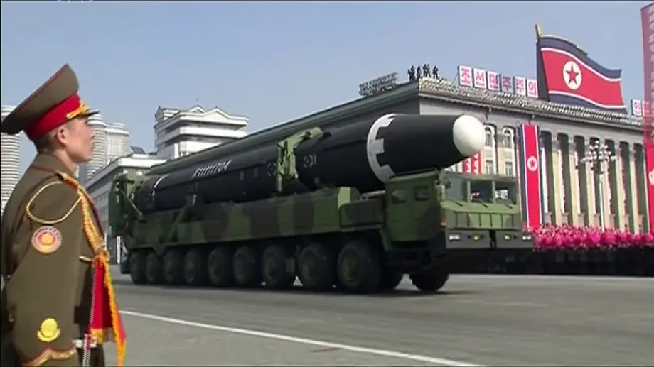 08.02.2018, 18:19 UhrKim Jong Un kann es nicht lassen. Gibt sich der nordkoreanische Diktator im Vorfeld der Olympischen Winterspiele im Nachbarland noch versöhnlich, demonstriert er nun mit einer martialischen Waffenschau seine Stärke. Neben winkenden Soldaten, Säbeltänzern und Dutzenden Panzern sorgt vor allem ein Geschoss für Aufsehen.