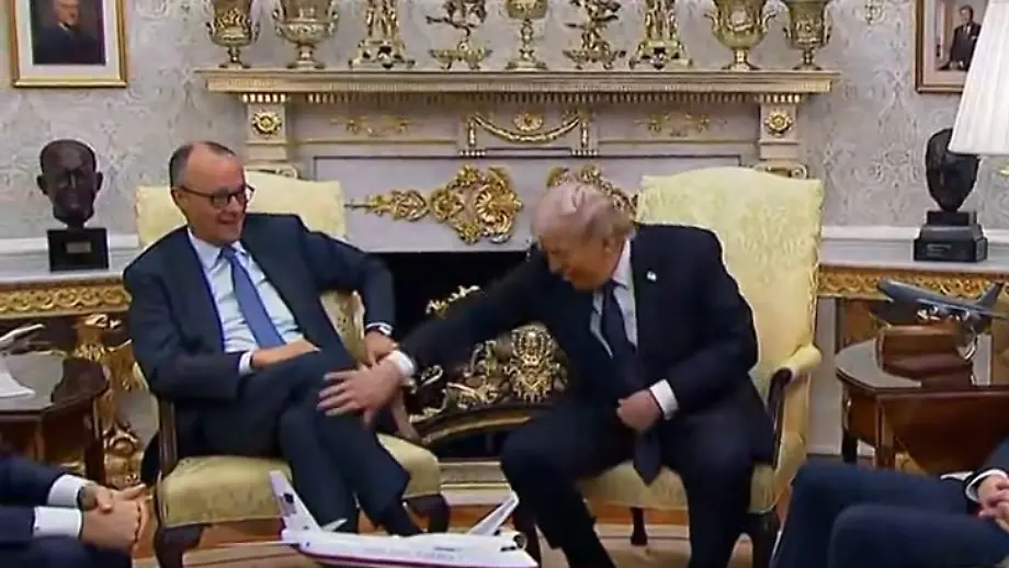 03.03.2026, 19:03 UhrWährend Bundeskanzler Merz im Oval Office zu Besuch ist, geht es vorrangig um die US-Militäroperation im Iran. Doch über einen Umweg über die Kritik an Spanien wird das Gespräch doch auf Trumps Zollpolitik gelenkt. Zum Umgang mit Deutschland hat der US-Präsident eine schnelle, wenn auch humorvolle Antwort parat.