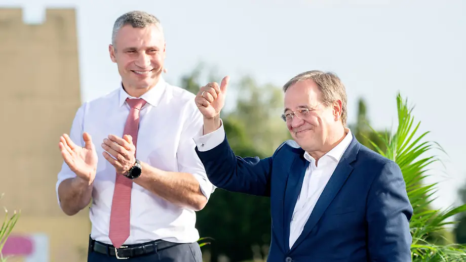 05.09.2021, 09:58 UhrFrei nach dem Motto "Angriff ist die beste Verteidigung" holt sich Armin Laschet mit Vitali Klitschko schwergewichtige Unterstützung in seine Ecke. Während der Ex-Boxprofi und Bürgermeister von Kiew die Wichtigkeit des Kämpfens betont, formuliert SPD-Kontrahent Olaf Scholz einen Wunsch-Koalitionspartner.