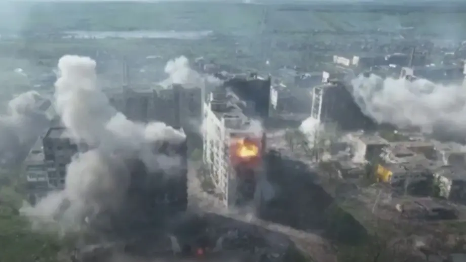 Überall Explosionen und RauchLuftüberwachung filmt schweren Beschuss auf Bachmut