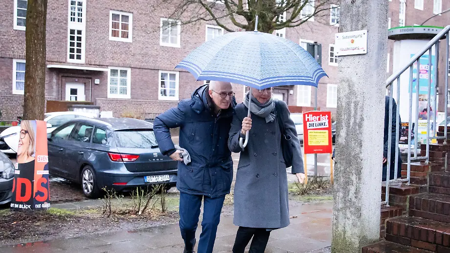 Hohe Beteiligung in Hamburg?"Man sieht viele Regenschirme zum Wahllokal gehen"