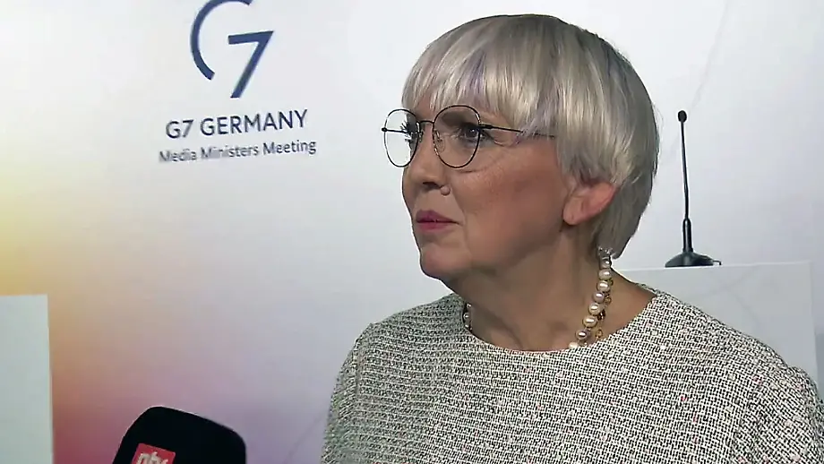 20.06.2022, 12:46 UhrDie Medienbeauftragten der G7-Staaten treffen sich in Bonn, um über den Kampf gegen Fake News und den Schutz der Pressefreiheit zu beraten. Die Staatsministerin der Bundesregierung, Claudia Roth, sieht die Themen aktuell so dringend wie selten und führt aus, welche Punkte auf der Agenda stehen.