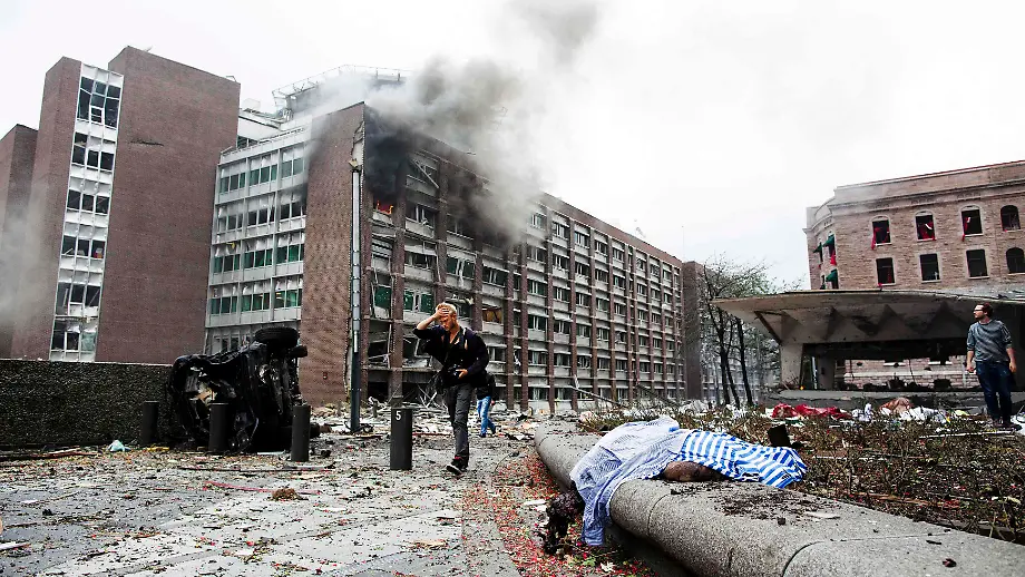 23.07.2011, 11:25 UhrPanisch rennen die Menschen durch die Straßen von Oslo, Sirenen heulen auf. Eine Bombe richtet im Regierungsviertel der Hauptstadt verheerenden Schaden an, sieben Menschen lassen ihr Leben. Noch am Straßenrand kümmern sich Passanten um die Verletzten. Die Osloer zeigen sich fassungslos.