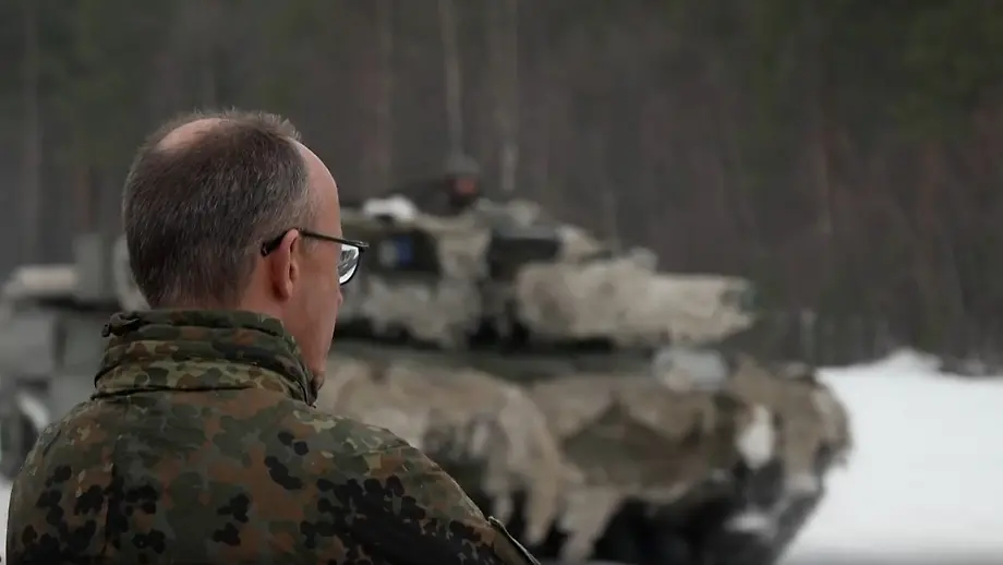 13.03.2026, 18:27 UhrZusammen mit seinem norwegischen Amtskollegen Støre und dem kanadischen Premierminister Carney besucht Bundeskanzler Merz eine Nato-Übung in Norwegen. In einer Stellungnahme kritisiert er die Aussetzung von Sanktionen durch die US-Regierung.