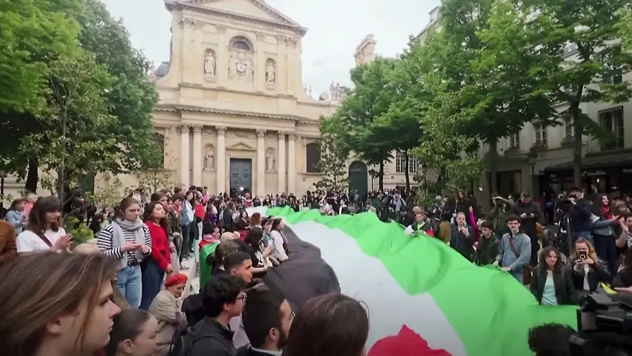 30.04.2024, 16:15 UhrAuch an der französischen Sorbonne Universität protestieren Studenten lautstark für Palästina. Schon zuvor kommt es an der Hochschule Sciences Po zu Blockaden. Trotz eines wohl friedlichen Verlaufes löst die Polizei die Demonstration auf.