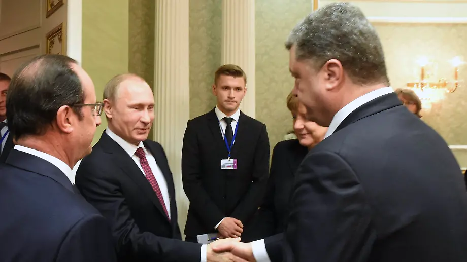 Verhandlungsmarathon in MinskPutin und Poroschenko reichen sich die Hand