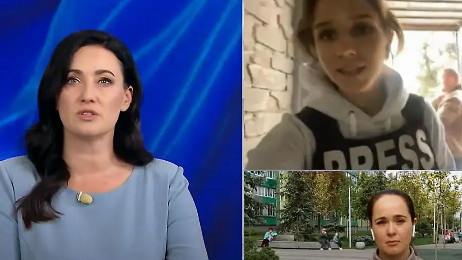 13.09.2022, 15:13 UhrDie russischen Truppen sind aus der Region um Charkiw in der Ukraine abgezogen, beschossen werden die zurückeroberten Gebiete aber weiter. Reporterin Victoria Strelsova berichtet für das ukrainische Fernsehen gerade aus Charkiw, als sie plötzlich vor Artilleriefeuer fliehen muss.