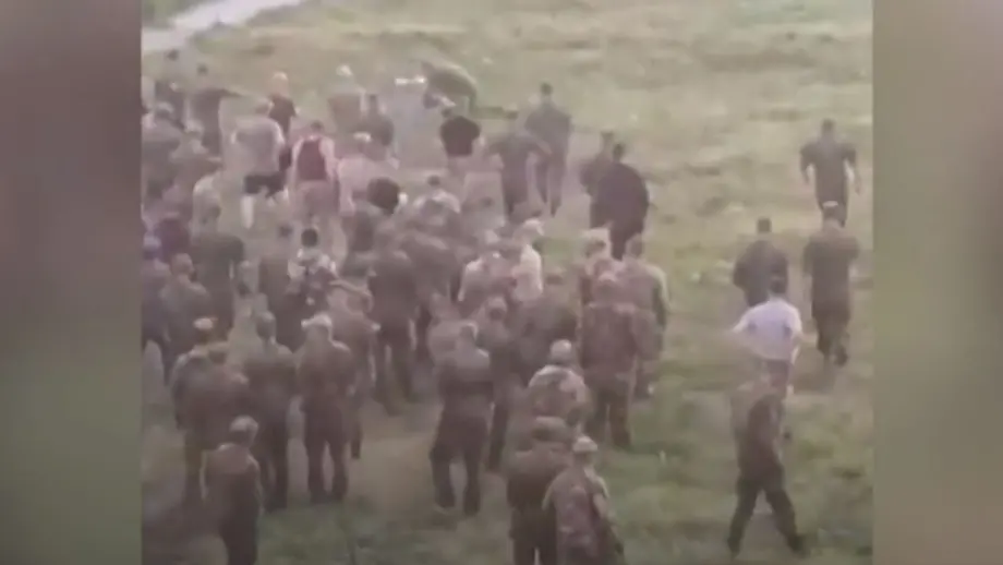 14.07.2023, 12:29 UhrIn einem russischen Militärlager bricht nach der Bestrafung eines Soldaten eine Massenschlägerei aus, bei der wohl Stöcke und Messer genutzt wurden. Ein Video aus Kalininez hält fest, wie zuvor zwei Männer aufeinander losgehen. Einer der Beteiligten kommt offenbar ums Leben.