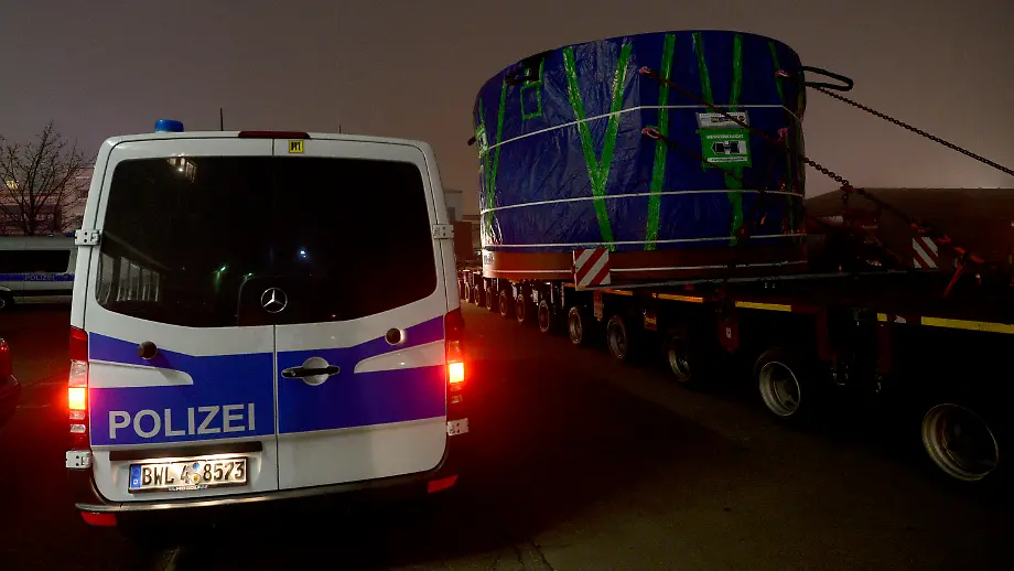 Schwertransporter erreicht BaustelleS21-Gegner blockieren Riesenbohrer