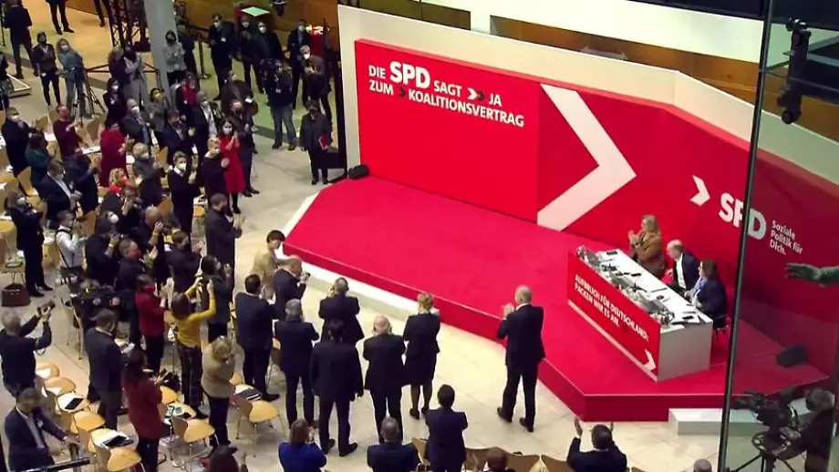 Scholz will lange KanzlerschaftSPD stimmt mit 98,8 Prozent für Koalitionsvertrag