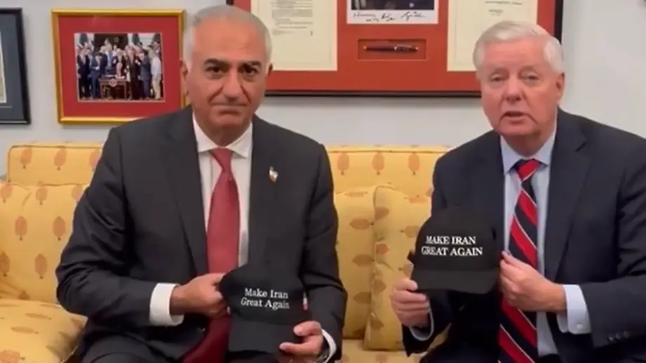 15.01.2026, 16:16 UhrInmitten der blutigen Proteste im Iran inszeniert sich der Sohn des ehemaligen iranischen Schahs, Reza Pahlavi, in Amerika als Symbolfigur unter den Exiliranern. Pahlavi tritt bei Fox News auf und posiert gemeinsam mit dem republikanischen US-Senator Graham mit "Make Iran Great Again"-Kappen.