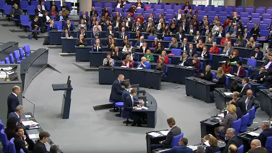 04.12.2024, 14:22 UhrBei seiner Eröffnungsrede zur Regierungsbefragung im Bundestag äußert sich Bundeskanzler Scholz zunächst zu seinem kürzlich überraschend eingerichteten Besuch in der Ukraine. Anschließend appelliert er an die versammelten Abgeordneten, auch vor der anstehenden Neuwahl noch Projekte mitzutragen.