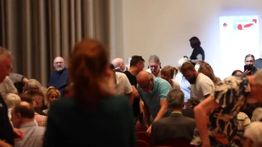 06.09.2024, 09:53 UhrEin "Bürgerdialog" der AfD in Essen muss gleich mehrfach unterbrochen, der Saal zwischenzeitlich geräumt werden. Schrille, laute Alarmgeräusche machen Gespräche in dem Raum unmöglich. Nach fieberhafter Suche zeigt sich: Dahinter steckt ein Protest.