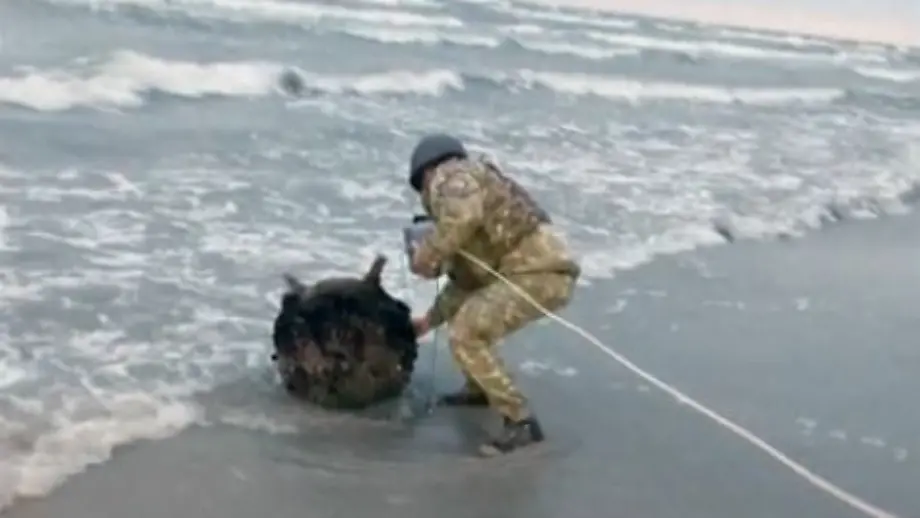 Sprengfalle russischer BauartSeemine wird an rumänischem Strand angespült