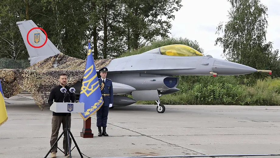 Präsentation an geheimem OrtSelenskyj zeigt erste F-16-Jets mit Ukraine-Wappen