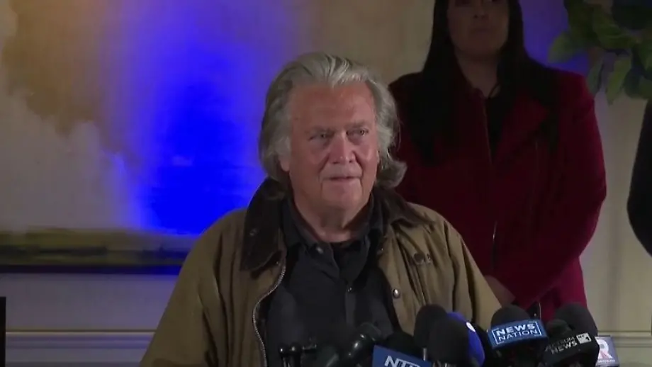 30.10.2024, 16:08 UhrStephen Bannon war lange als Stratege an der Seite von Donald Trump. Nach vier Monaten in Haft ist er nun wieder auf freiem Fuß. Bei seiner Entlassung schwadroniert er von der gestohlenen Wahl - bis er kurios von einem angeblichen Mithäftlig unterbrochen wird.