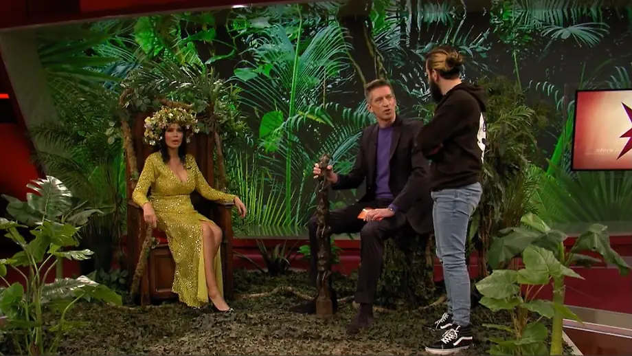 02.02.2023, 15:49 UhrEigentlich sollte es in dieser Episode des "Stern"-Magazins um die frischgebackene Dschungelkönigin Djamila Rowe gehen. Doch Moderator Steffen Hallaschka muss sich unerwartet mit anderem rumschlagen: Zwei junge Männer stürmen vor die Kameras und verwirren mit zusammenhangslosen Aussagen.