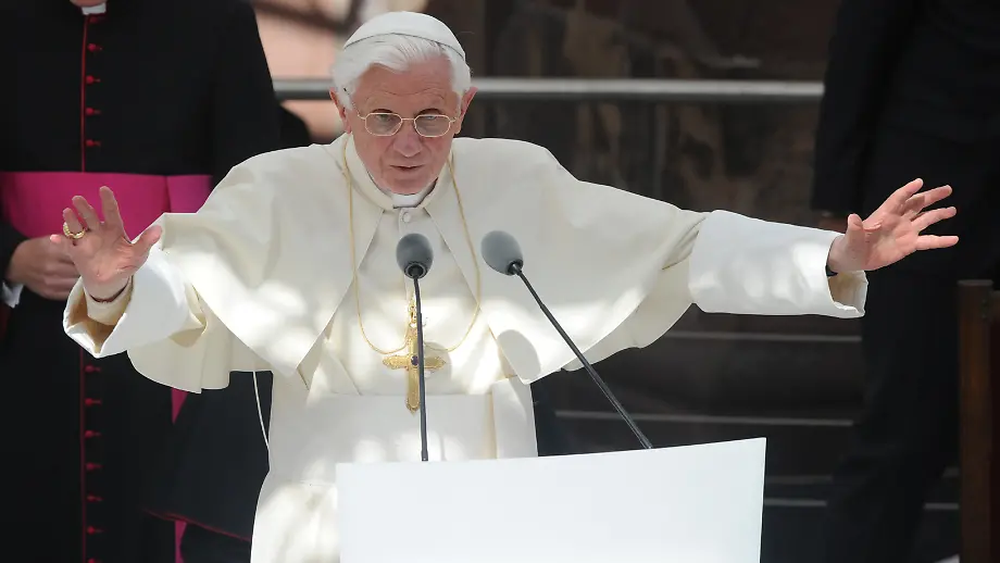 24.09.2011, 16:47 UhrPäpstlicher Besuch in Freiburg: Auf dem Weg zum Münsterplatz winkt Benedikt XVI. aus seinem Papamobil und segnet die Menschen. Im Münster zieht er sich anschließend mit rund 600 Gläubigen zum Gebet zurück.