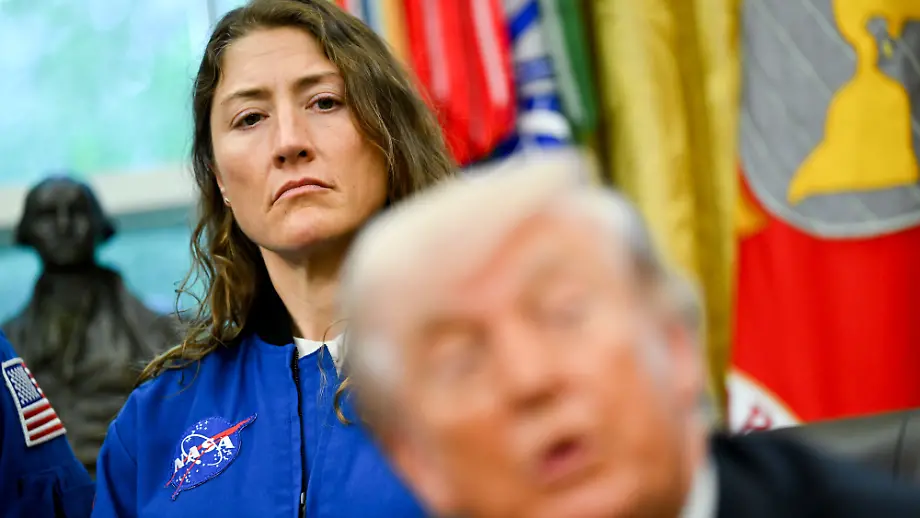 30.04.2026, 17:18 UhrBeim Empfang der Artemis-Crew im Oval Office rückt US-Präsident Donald Trump sich selbst in den Mittelpunkt. Während er Eigenlob, Raumfahrtpläne und politische Themen vermischt, stehen die Astronauten minutenlang schweigend hinter ihm.