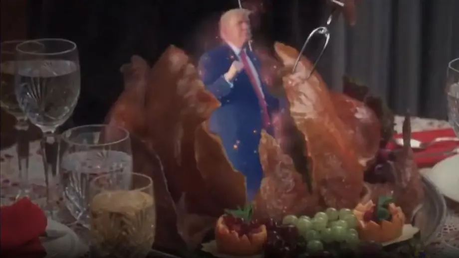 Gesichter in bekannter FilmszeneTrump veralbert Gegner mit Truthahn-Tanz in Video