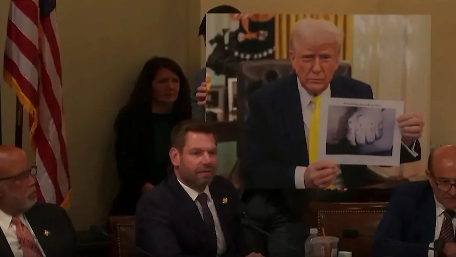 15.05.2025, 20:49 UhrEs ist eine simple Frage, mit der Eric Swalwell sein Gegenüber Kristi Noem unter Druck setzt. Die US-Heimatschutzministerin wird auf ein Foto angesprochen, das - offensichtlich bearbeitet - vom Präsidenten Donald Trump dazu genutzt wurde, einen US-Bürger abzuschieben.