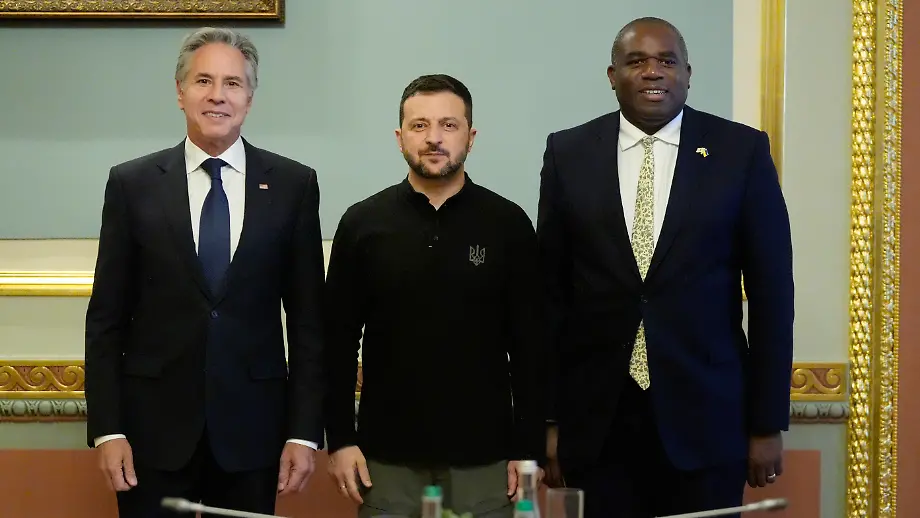 12.09.2024, 08:46 UhrDer US-Außenminister und sein britischer Amtskollege besuchen Präsident Selenskyj in Kiew. Blinken betont sicherstellen zu wollen, dass "die Ukraine alles hat, was sie braucht". Auch die Nutzung westlicher Langstreckenraketen ist erneut Thema. In Großbritannien scheinen die Zeichen bereits auf grün zu stehen.