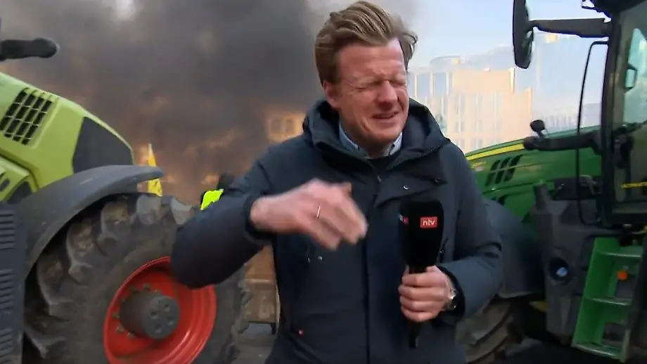 Reporter plötzlich im TränengasWährend ntv-Schalte "eskalieren die Zustände" in Brüssel