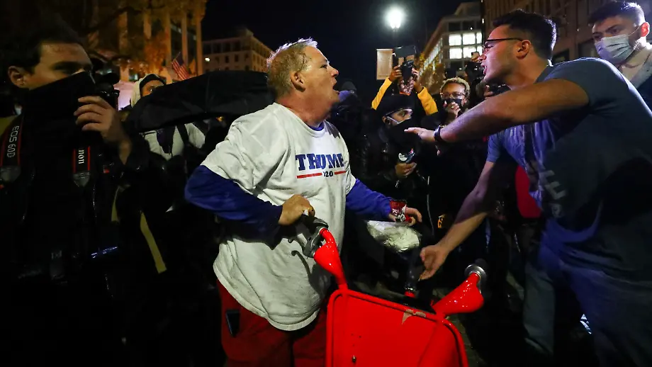 15.11.2020, 09:37 UhrAnhänger des amtierenden US-Präsidenten Trump protestieren in Washington gegen angeblichen Wahlbetrug. Nach einer friedlichen Demonstration eskaliert in der Nacht die Gewalt. Protestierende gehen mit Knüppeln aufeinander los, die Polizei setzt Tränengas ein.