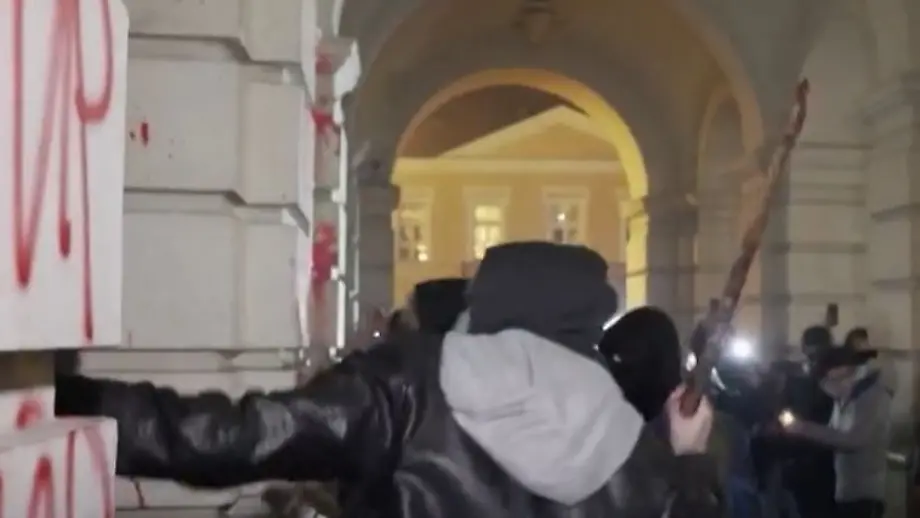 Entsetzen nach Unglück in SerbienWütende Protestler prügeln auf Rathaus-Fenster ein