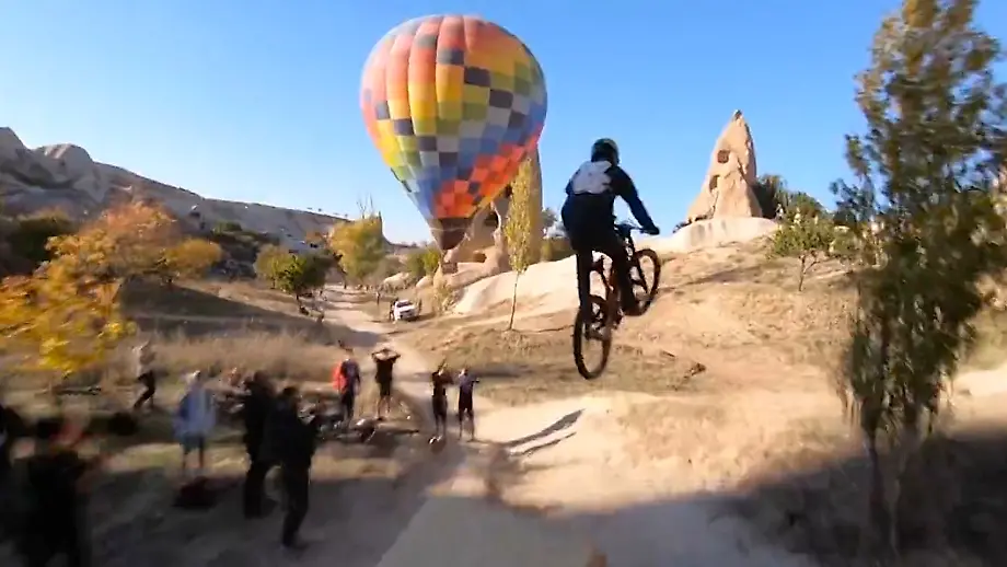 05.11.2021, 07:26 UhrRund 300 wagemutige Mountainbiker rasen beim Red Bull Dawn till Dusk Race in malerischer Landschaft durch Kappadokien. Dabei geht es in den Disziplinen Enduro, Cross-Country und Downhill ordentlich zur Sache. Umrahmt wird die Veranstaltung von schwebenden Zuschauern in luftiger Höhe.