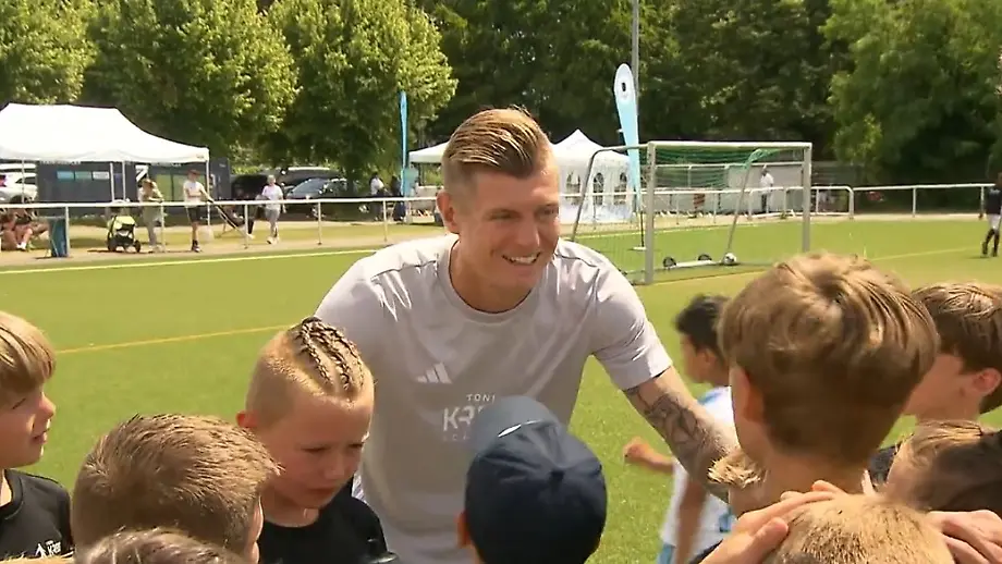 03.07.2023, 20:37 UhrFür die deutsche Fußball-Nationalmannschaft spielt Toni Kroos schon etwas länger nicht mehr. Den Glauben an DFB-Coach Hansi Flick und sein Team hat er aber noch. Am Rande seiner Academy-Woche erzählt der Weltstar auch, was seine Frau mit der Verlängerung bei Real Madrid zu tun hatte.