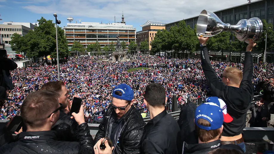 Nach vier Jahren ohne TitelAdler Mannheim lassen es bei Meisterfeier krachen