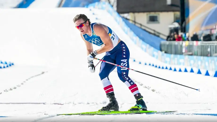 13.02.2026, 17:23 UhrBei immerhin 9 Grad plus an der olympischen Skilanglauf-Strecke kommt dem US-Athleten John Steel Hagenbuch offenbar die Hitze. Nur im Leibchen geht er an den 10-Kilometer-Start. Sein lässiger Auftritt nimmt dann jedoch schon kurz nach dem Start eine sportlich folgenschwere Wende.