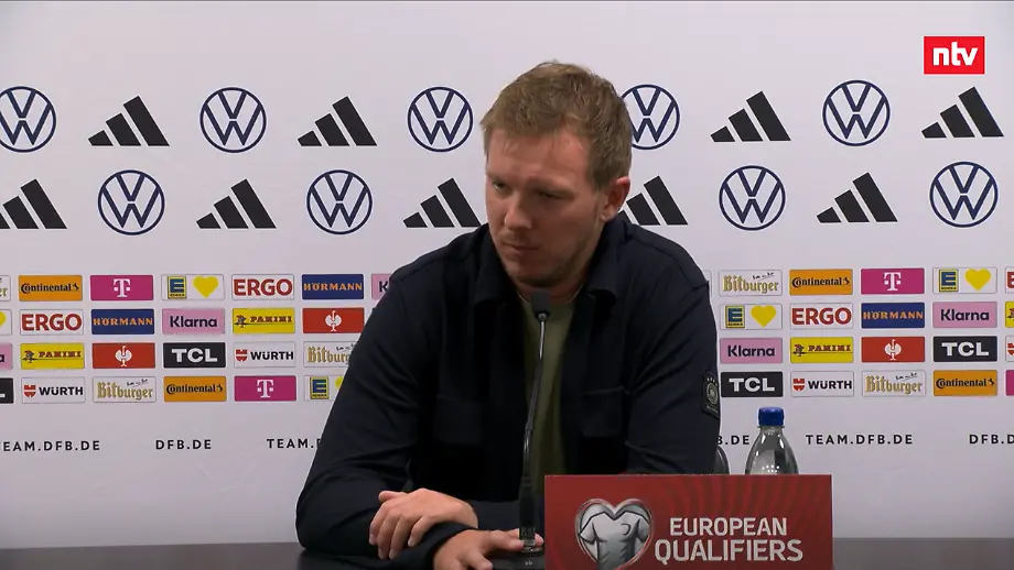 13.10.2025, 11:13 UhrDie DFB-Elf steht am Montagabend in Nordirland vor einem wichtigen Spiel in der WM-Qualifikation. In Belfast will die Mannschaft von Bundestrainer Julian Nagelsmann die Tabellenspitze in Gruppe A verteidigen. In der Pressekonferenz gibt Nagelsmann schon mal Einblicke in seine Startelf.