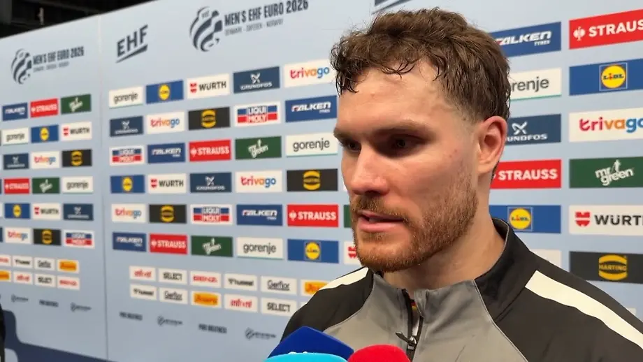 16.01.2026, 08:12 UhrDeutschland startet mit einem Sieg in die Handball-EM. Doch der Weg dorthin war "ein harter Kampf", so Kapitän Golla. Denn der Gegner macht es dem DHB-Team alles andere als leicht: Das Spiel bleibt lange zäh, auch weil Österreich mit viel Härte dagegenhält. Am Ende ist es ein knapper Erfolg - doch die Spieler sind zufrieden.