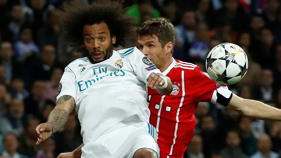 02.05.2018, 17:48 UhrReal Madrids Spieler Marcelo bekommt im Champions-League-Rückspiel gegen den FC Bayern den Ball an die Hand. Der Schiedsrichter gibt keinen Elfmeter. Marcelo spricht von einer Fehlentscheidung.