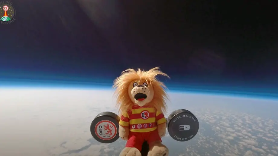 Maskottchen fliegt ins AllDüsseldorfer Eishockey-Team sendet kosmische Grüße