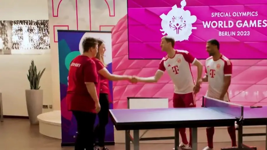 Aufwärmen für die Special OlympicsEhrgeiziges Tischtennis-Doppel besucht FC Bayern