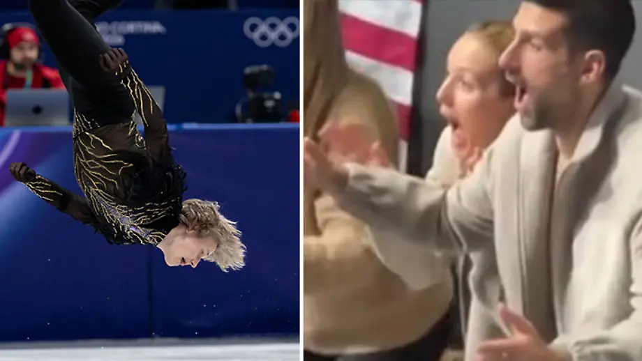 Tennis-Star jubelt Eiskünstler zuMalinins Rückwärtssalto reißt Djokovic aus dem Sitz