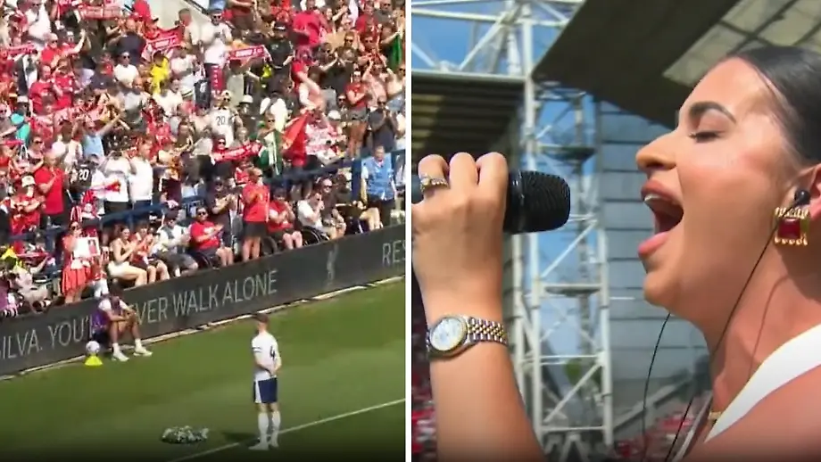 14.07.2025, 08:10 UhrKeine zwei Wochen nach dem tragischen Unfalltod von Liverpool-Stürmer Diogo Jota muss der schwer getroffene Verein zum ersten Spiel auflaufen. Vor dem Auswärts-Test gedenken Spieler und Fans der Verstorbenen. Unter Tränen wird zu den Klängen der Vereinshymne ein Kranz niedergelegt.