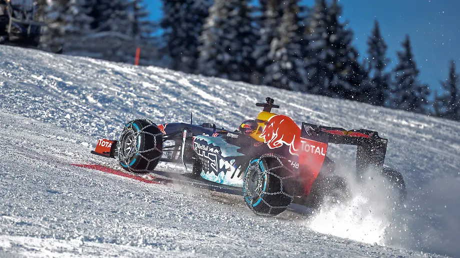 Gipfelspektakel in KitzbühelFormel-1-Boliden brettern über die Skipiste