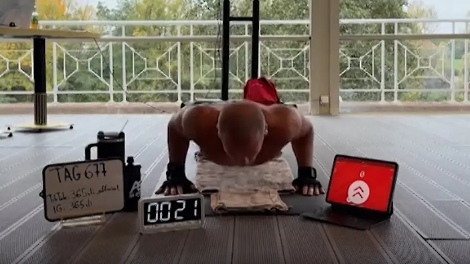 13.10.2025, 20:46 UhrIlja Mazar ist der neue Weltrekordhalter im Liegestütz. Beim offiziellen Versuch wächst der Fotograf über sich hinaus und stellt den alten Rekord deutlich in den Schatten. Dabei muss er "durchgehend mit Krämpfen und Schmerzen kämpfen". Am Ende der quälenden Stunde steht eine unglaubliche Zahl.