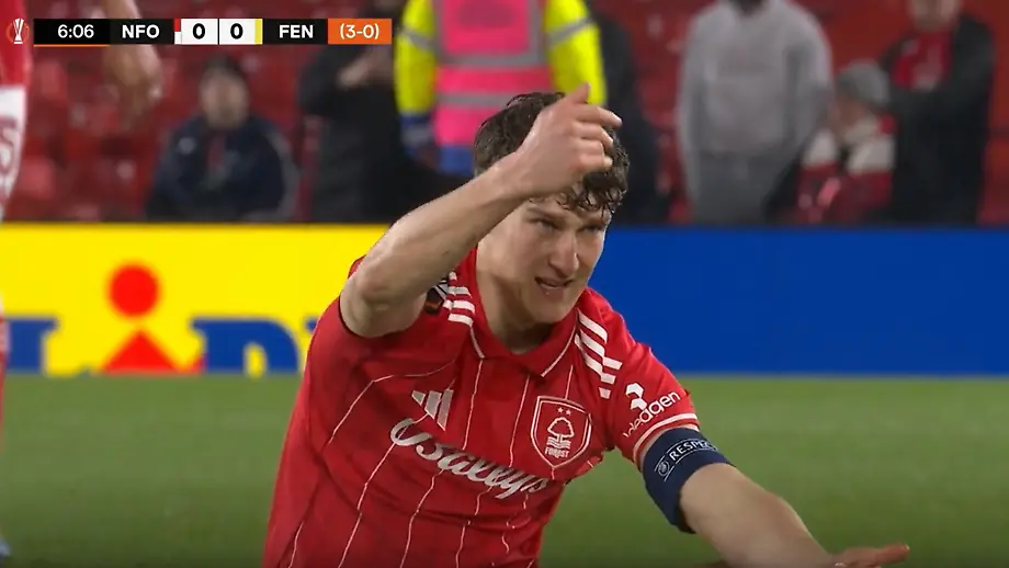 27.02.2026, 15:47 UhrNottingham-Forest-Kapitän Ryan Yates erleidet im Europa-League-Spiel gegen Fenerbahce eine schockierende Fingerverletzung - so heftig, dass TV-Sender TNT Sports die Wiederholung nicht zeigen will. Nach medizinischer Behandlung kehrt Yates auf den Platz zurück und hilft seiner Mannschaft ins Achtelfinale.