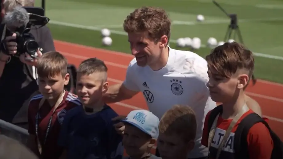 02.06.2022, 11:44 UhrMit dem Ausbruch des Krieges in der Ukraine müssen unzählige Menschen das Land verlassen, darunter auch viele Kinder. In Deutschland unterstützt der DFB Fußballvereine, die den Kindern Training ermöglichen. Ein paar glückliche Nachwuchskicker haben sogar Besuch von Thomas Müller und Co. bekommen.