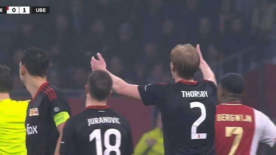 16.02.2023, 20:32 UhrNach gut einer Stunde fällt in Amsterdam endlich das erste Tor. Die Union-Fans sind außer sich - doch der Führungstreffer der Köpenicker wird nach kurzer Zeit wieder einkassiert. Schuld ist ein Handspiel
