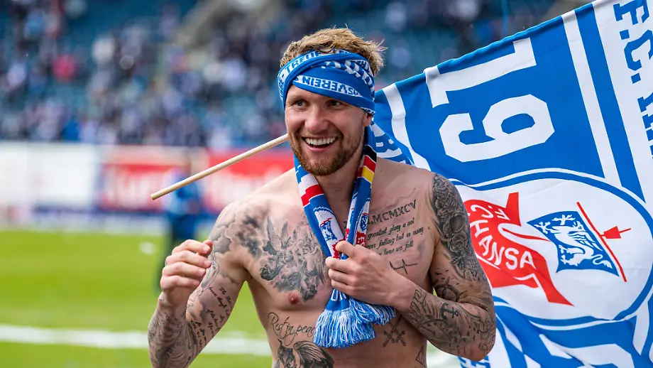 23.05.2021, 12:50 UhrDer FC Hansa Rostock befindet sich nach dem Aufstieg in die 2. Liga im Feierrausch, allen voran Mittelfeld-Spieler Jan Löhmannsröben. Der "alte Traktor", der nach dem Erfolg nur noch "tanken und feiern" will, resümiert: "Das ist besser als Sex!".