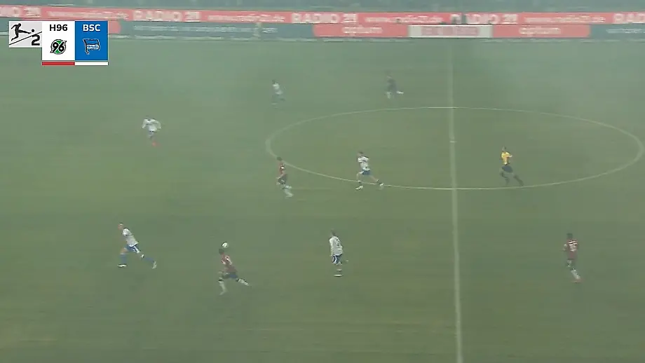 Tabellenführer fast chancenlosHertha düpiert Liga-Primus 96 in dichtem Pyro-Nebel