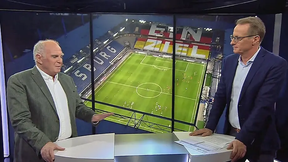 31.03.2021, 20:43 UhrKurz vor dem Länderspiel der deutschen Fußball-Nationalmannschaft blickt RTL-Experte Uli Hoeneß emotional über den Tellerrand des Fußballgeschehens hinaus. In einem flammenden Appell ruft er dazu auf, noch einmal Kraft für den Endspurt in der Pandemie zu mobilisieren.
