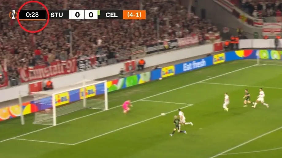 26.02.2026, 19:19 UhrMit einem komfortablen 4:1-Vorsprung aus dem Hinspiel empfängt der VfB Stuttgart die Schotten von Celtic Glasgow in den Playoffs der Europa League. Dass das Weiterkommen aber noch nicht besiegelt ist, zeigt sich nach nicht einmal einer Minute. Die erste Aktion der Gäste fliegt den Schwaben direkt um die Ohren.