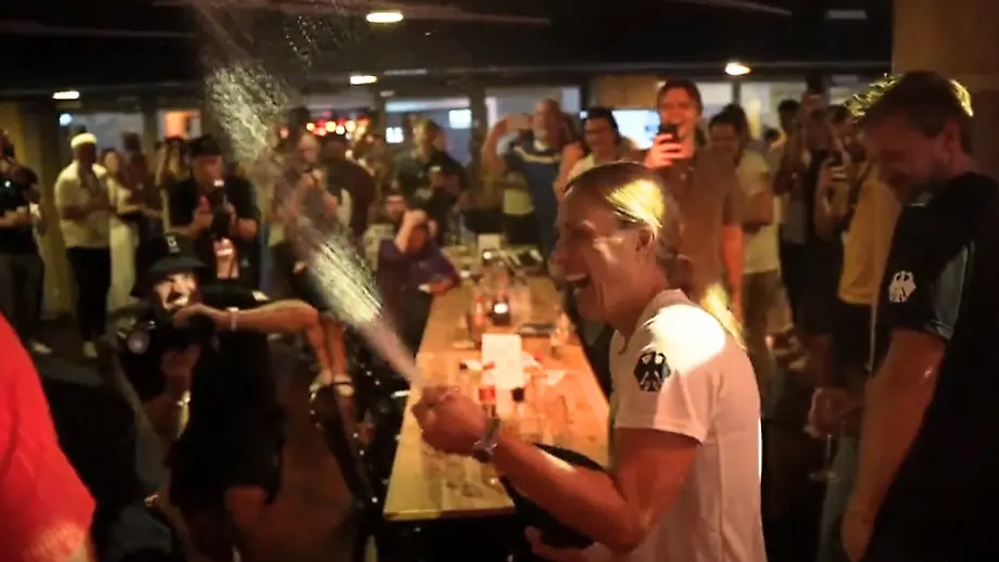 01.08.2024, 16:02 UhrMit ihrem Viertelfinalaus bei den Olympischen Spielen beendet die deutsche Tennis-Ikone Angelique Kerber ihre Profikarriere. Dass sie das Turnier in Paris ohne Edelmetall abschließt, scheint bei der anschließenden Überraschungsparty im Deutschen Haus niemanden zu interessieren. Kerber lässt die Korken knallen und resümiert: "Gänsehaut pur".